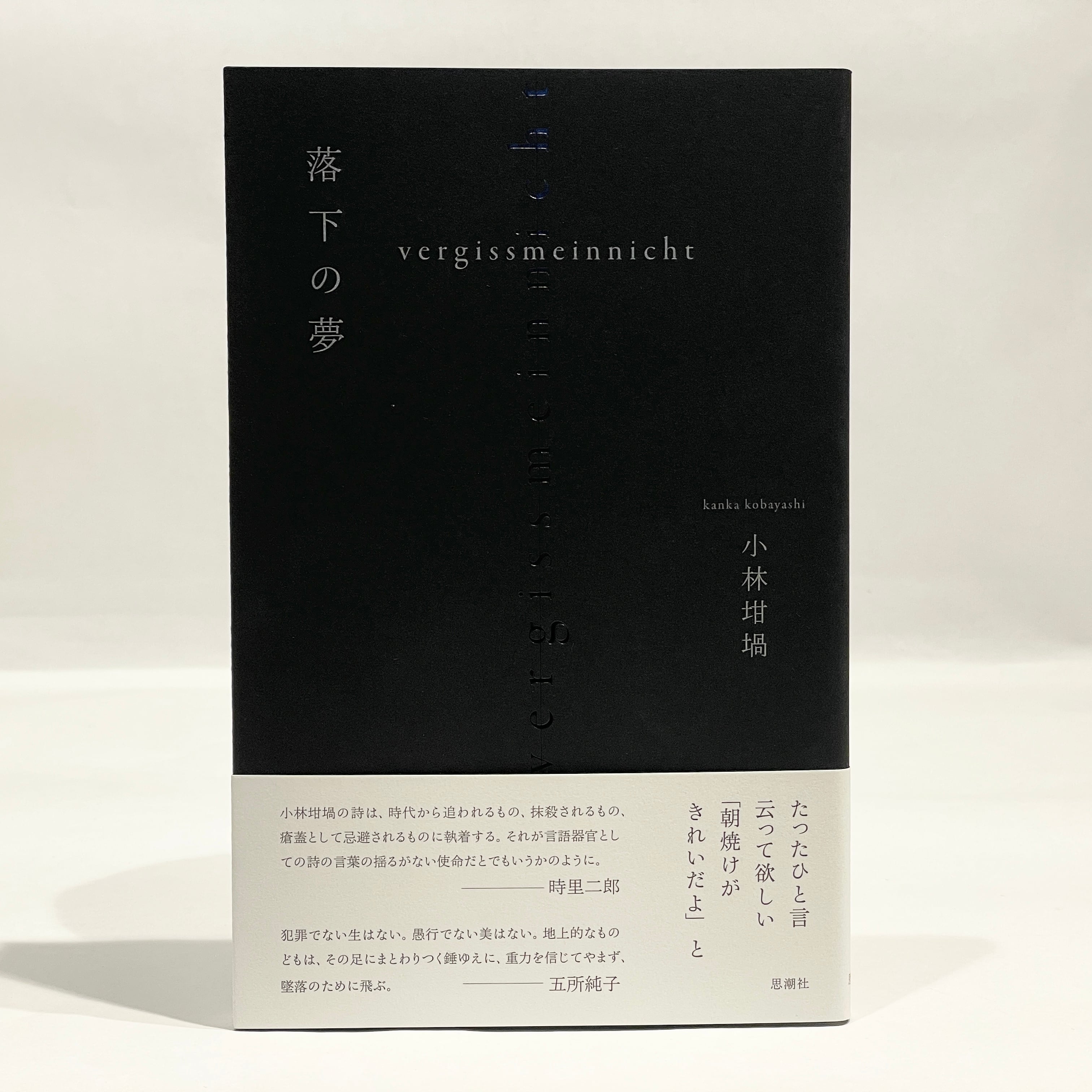 小林坩堝の詩は、時代から追われるもの、抹殺されるもの、瘡蓋として忌避されるものに執着する。それが言語器官としての詩の言葉の揺るがない使命だとでもいうかのように。新しい詩集では、落下――すなわち羽と言語(重力)とのせめぎ合いに、あの《歴史の天使》を召喚する。鮮烈な第一詩集『でらしね』の紅い言語が「魔子」を呼び出したように。――時里二郎