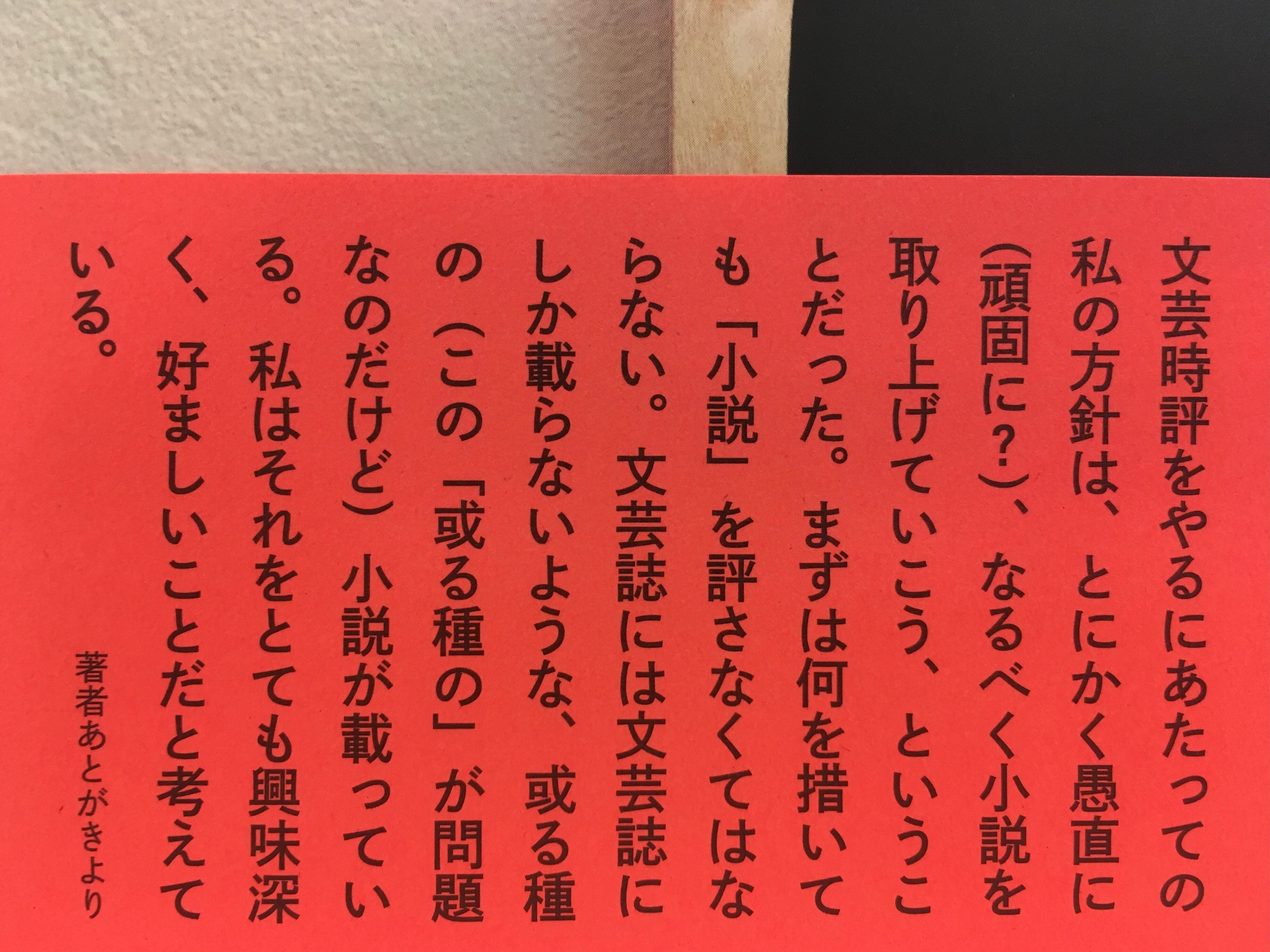 文芸時評をやるにあたっての私の方針は、とにかく愚直に(頑固に?)、なるべく小説を取り上げていこう、ということだった。まずは何を措いても「小説」を評さなくてはならない。文芸誌には文芸誌にしか載らないような、或る種の(この「或る種の」が問題なのだけど)小説が載っている。私はそれをとても興味深く、好ましいことだと考えている。